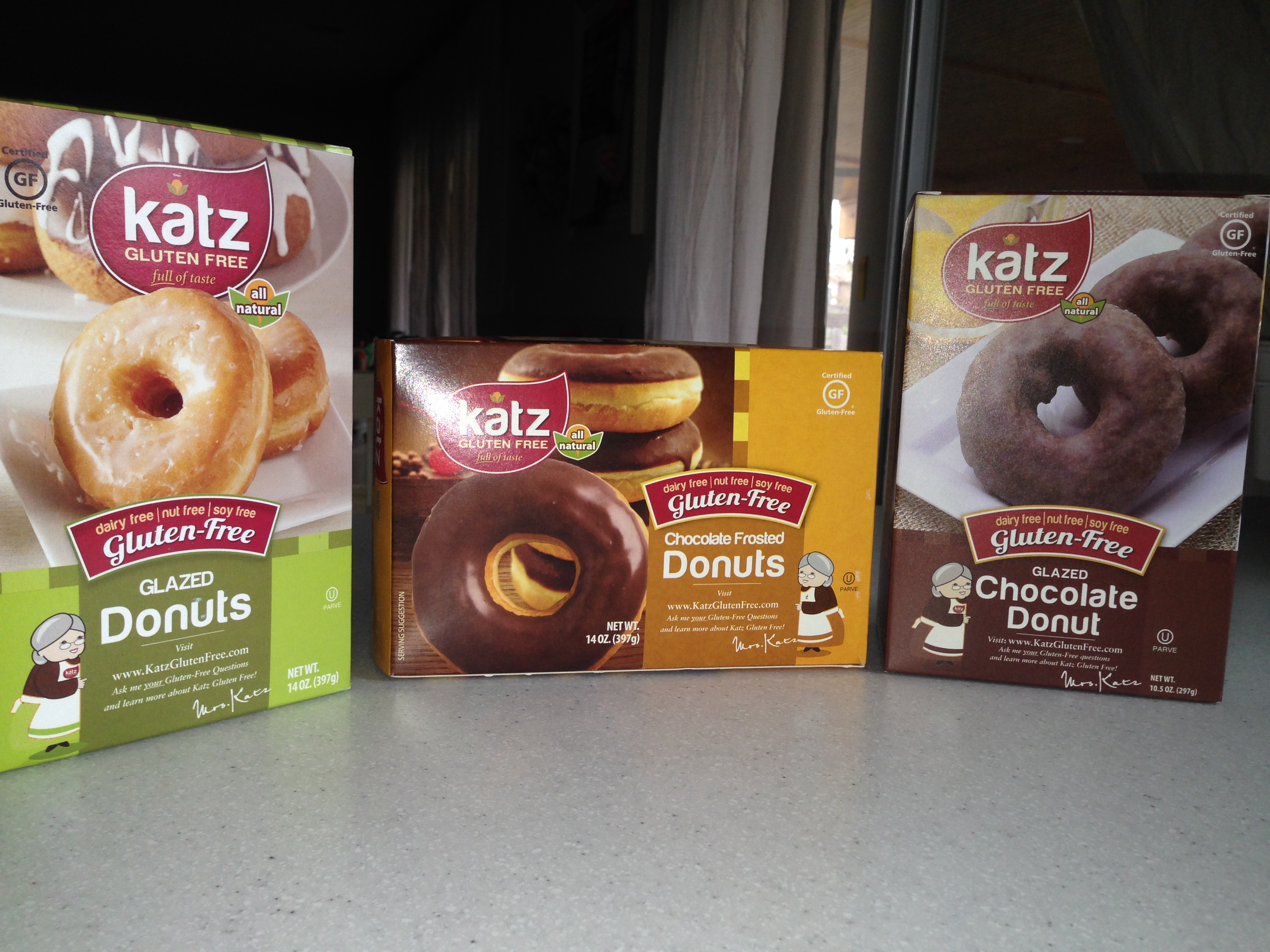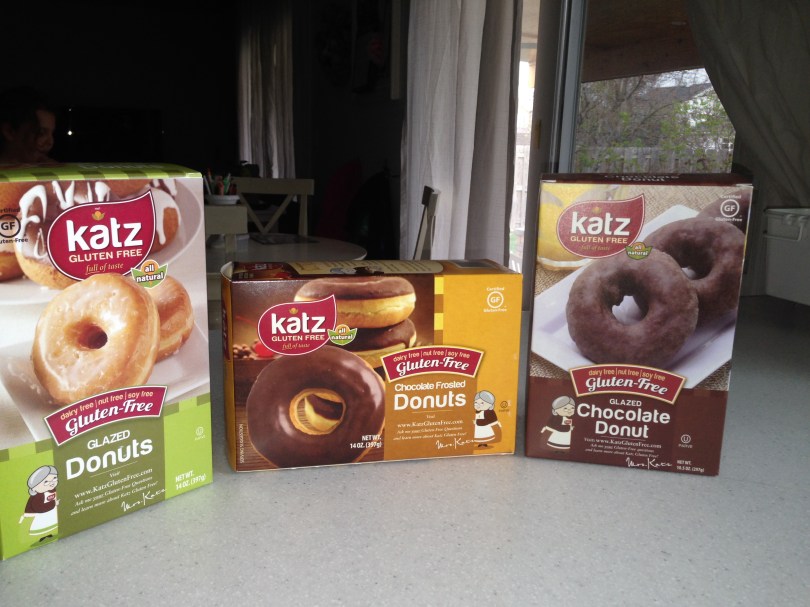 Katz doughnuts are dairy free and gluten free. They are also nut free and potato free. We find them at a few local grocery stores (except those amazing looking filled ones) and our favorite health food store carries them.