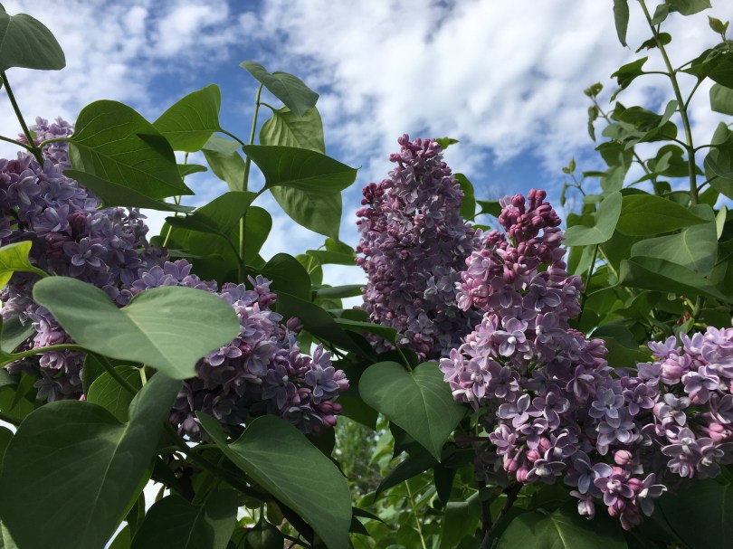 There are hues of purple everywhere. I have Lilacs and vViolets and my Red Bud tree is an amazing iridescent pink.