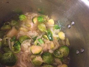 This soup is like french onion with brussels sprouts added. I don’t always caramelize the onions, especially when I’m planing on serving it pureed. Brown soup is not always appetizing. Also adding beef stock to this soup can take it to a whole new level.